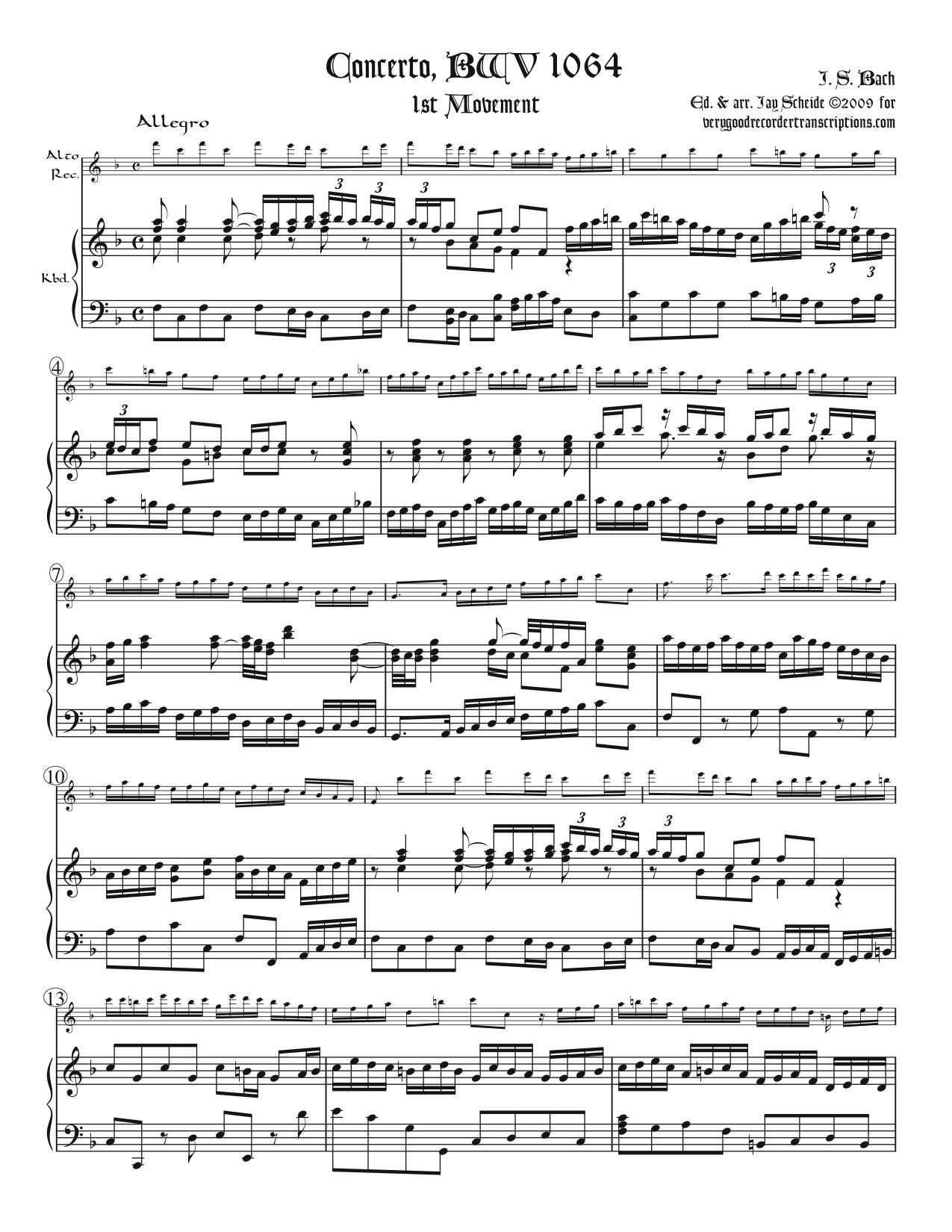 Originally for three harpsichords and orchestra in C major, transposed here to F. Note that the keyboard accompaniment part goes up to F6. Revised 4.15.22.