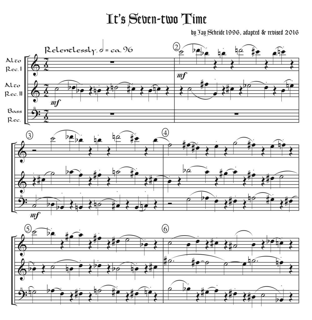 For AAB recorders, five pages plus a set of parts. To access this trio, go to “Set of Five Recorder Trios.”