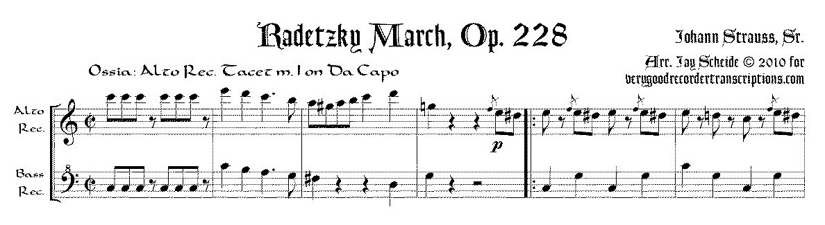 Radetzky March for alto?doubling C instrument?and bass recorders